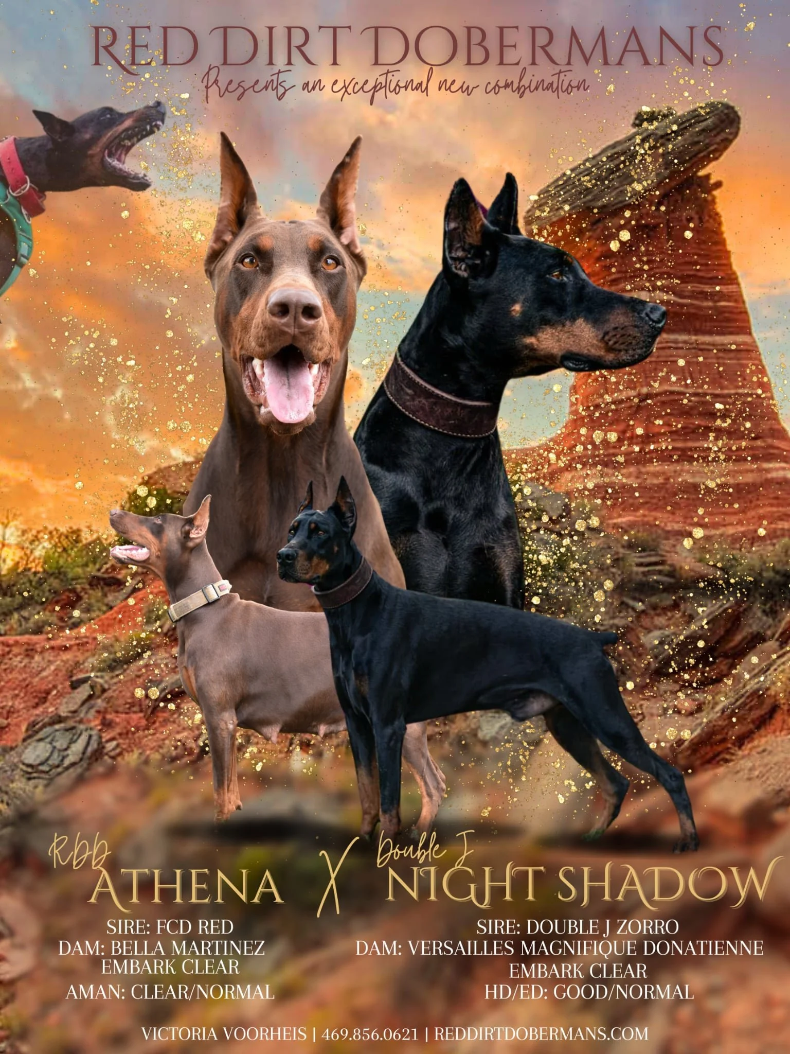 Feel free to contacts regarding any questions at reddirtdobermans@yahoo.com